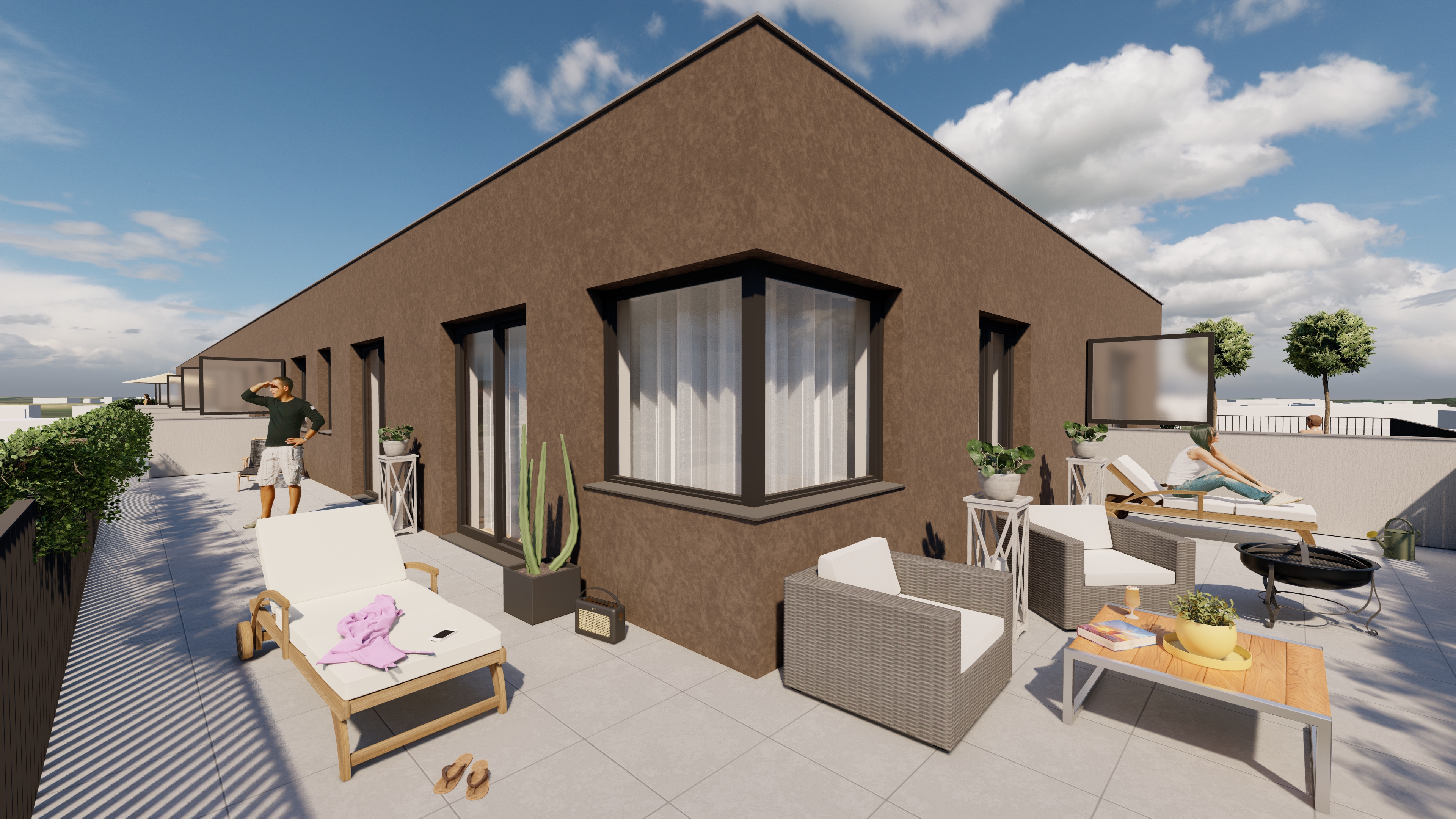 Kvalita bydlení nespočívá jen ve velikosti bytu, jeho čtyřech zdech a dobrých dispozicích, ale především v tom, jak se vám bude žít v jeho okolí. Vlastníci bytů mohou využívat soukromou společnou zahradu s ovocnými stromy a prostorem pro společné setkávání. Budoucí SVJ na základě potřeb majitelů rozhodne o jejím využití. Může zde vzniknout například dětské hřiště nebo posezení s grilem, kde si dáte drink se sousedy pod okny vašeho bytu. Aby se zahrada co nejvíce zelenala, bude zde umístěna akumulační nádrž na dešťovou vodu, která bude sloužit pro její zavlažování. Na životní prostředí myslíme i při řešení parkovacích stání pro rezidenty a návštěvy, které se nachází před domem. Dešťovou vodu zde necháváme přirozeně zasakovat – prostě proto, že pro přírodu je zasakování mnohem vhodnější.